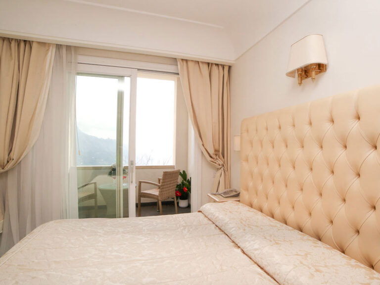 Le Camere Standard con balcone che affaccia sulla Costiera Amalfitana ed il Golfo di Salerno sono finemente arredate in stile classico.